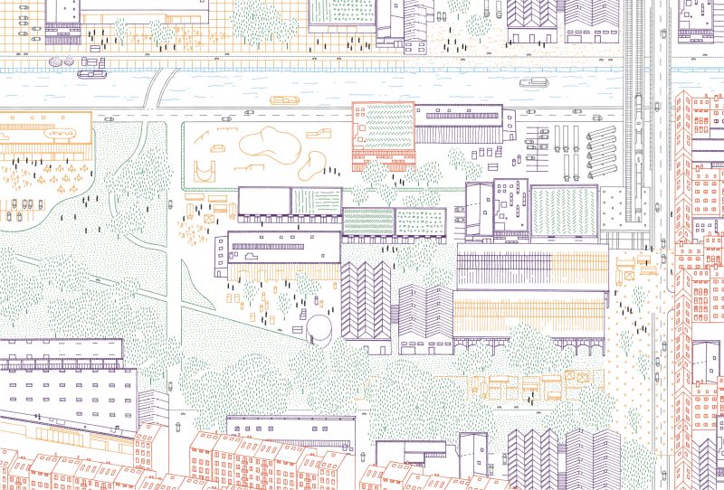 Contribution graphique à l'étude urbaine Productive BXL menée par Architecture Workroom Brussels (AWB).