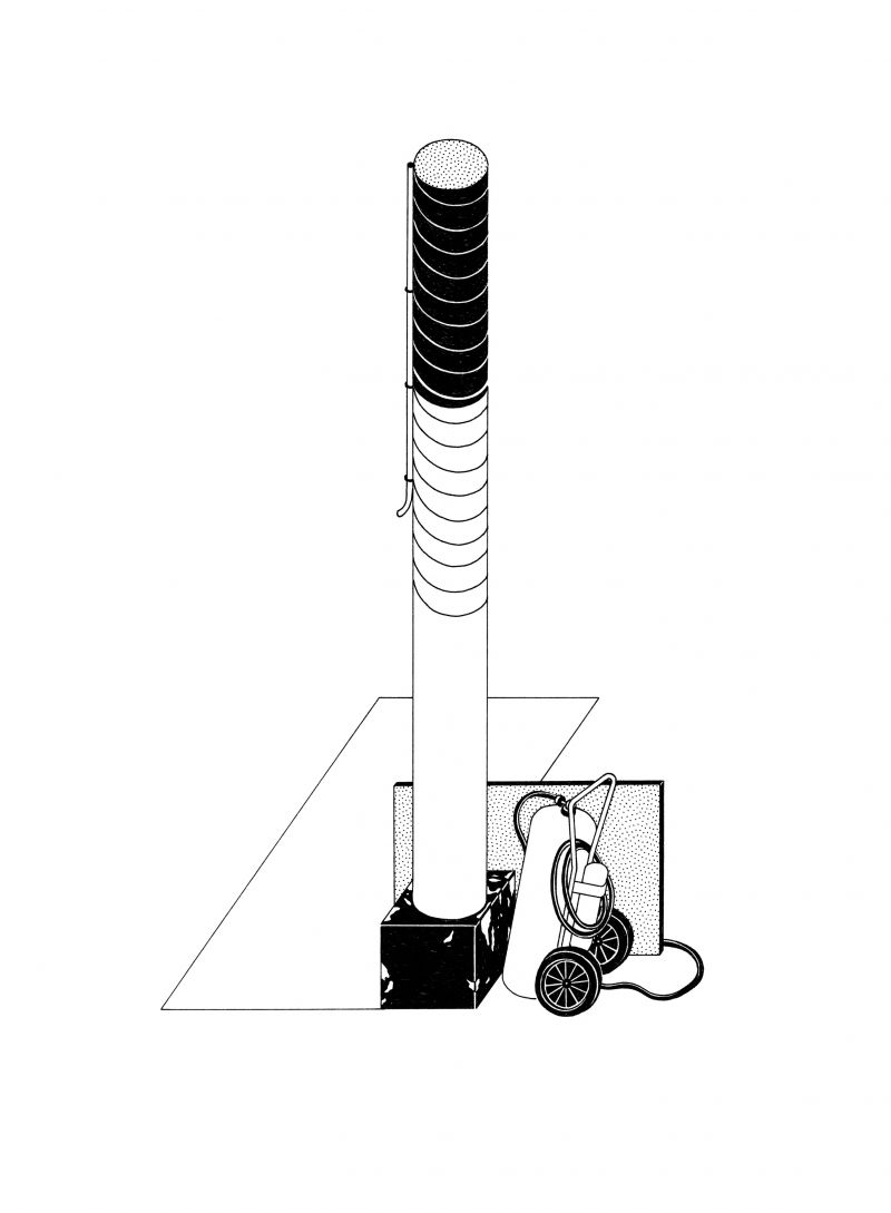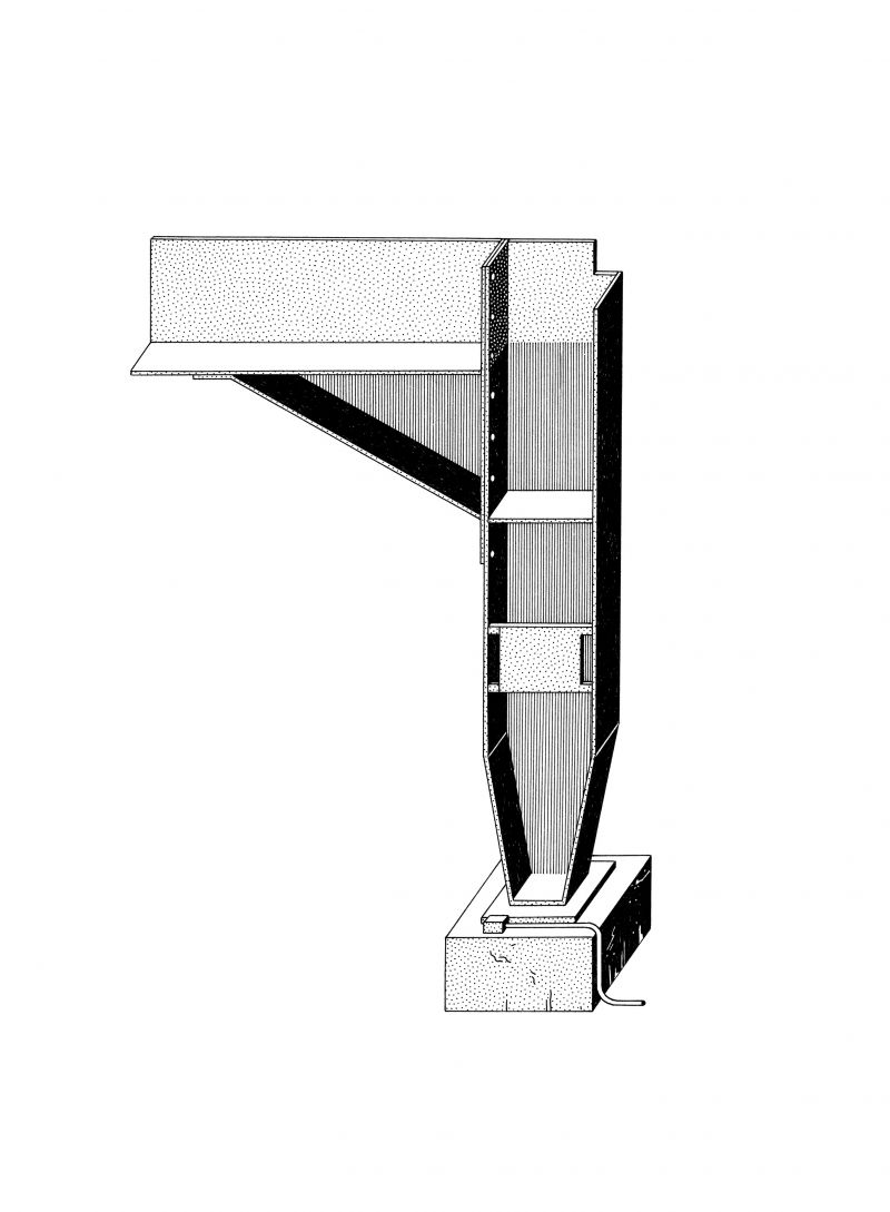 ,Encre sur papier / 29,7 x 42 cm. Commande de la Fondation Kanal et du CIVA. Série de dessins extraits du bâtiment des anciennes usines Citroën, actuel Musée Kanal-Pompidou à Bruxelles. Dessins originaux disponibles à la vente.